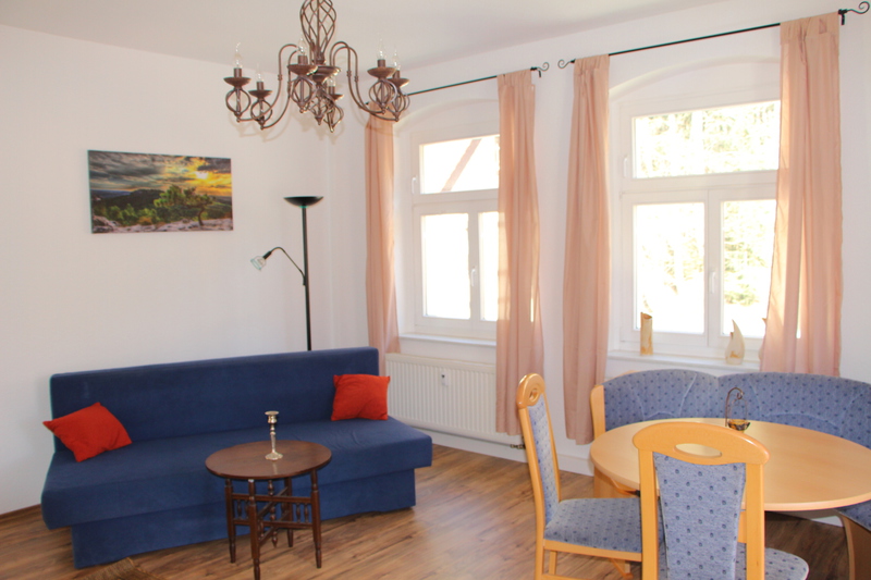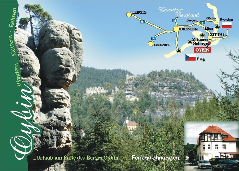 Die 4-Raum-Vollkomfort-Ferienwohnung mit Blick auf den Scharfenstein und auf den Berg Oybin befindet sich im denkmalgeschützten Haus in der Flaniermeile von Oybin. Separate Wohnungseingangstür. Die Wohnung verfügt über zwei große Schlafzimmer mit Doppelbett, Wohnzimmer mit Erker und Flachbild-TV, Küche mit Fenster, 2 Bäder. Sehr zentral und trotzdem ruhig in Oybin. PkW- Stellplatz vorhanden. Von hier aus können Sie bequem Wanderungen in das gesamte Zittauer Gebirge unternehmen.